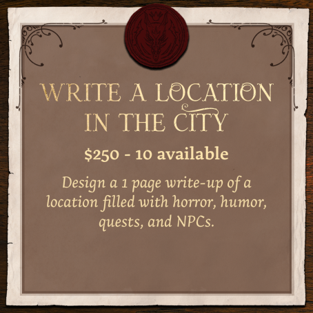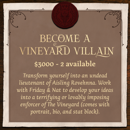 Get involved in helping us write The Vineyard RPG and also help us fund! You’d be going through the same process as our writers do on the team. We have options big and small, depending on your budget.